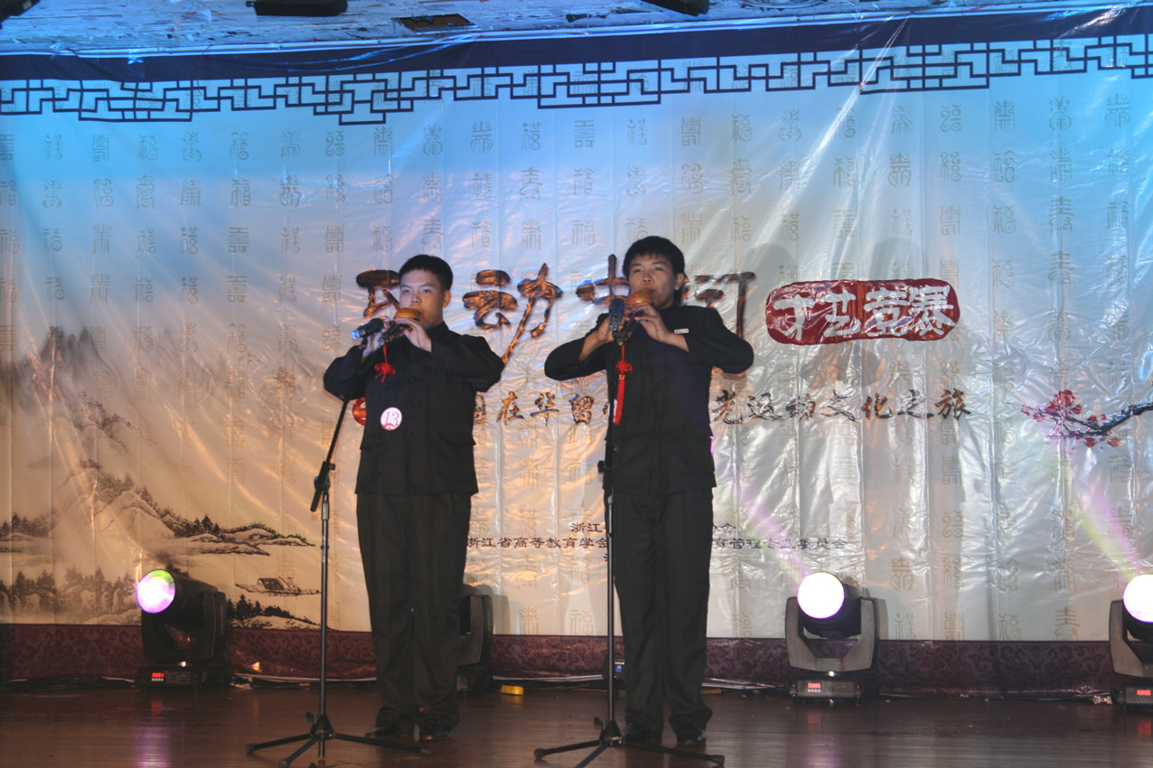 图为公司职工参加才艺汇演,表演葫芦丝演奏