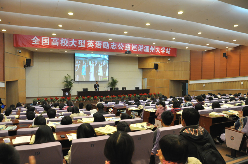 许多同学在讲座前1小时就早早来到现场等候,讲座开始前20分钟,图书馆报告厅内早已座无虚席。彭教授在热烈的掌声中上台,幽默诙谐且极富感染力的开场白立即引起了全场观众的共鸣。他结合翔实的数据,说明了英语能力在国际人才竞争中的重要作用;通过自身的求学经历,与同学们分享了英语的学习方法;在讲座的最后,还向同学们介绍了美国的留学文化。彭铁城教授以其独特的演讲风格和良好的互动性,将讲座不断推向高潮,现场掌声不断。