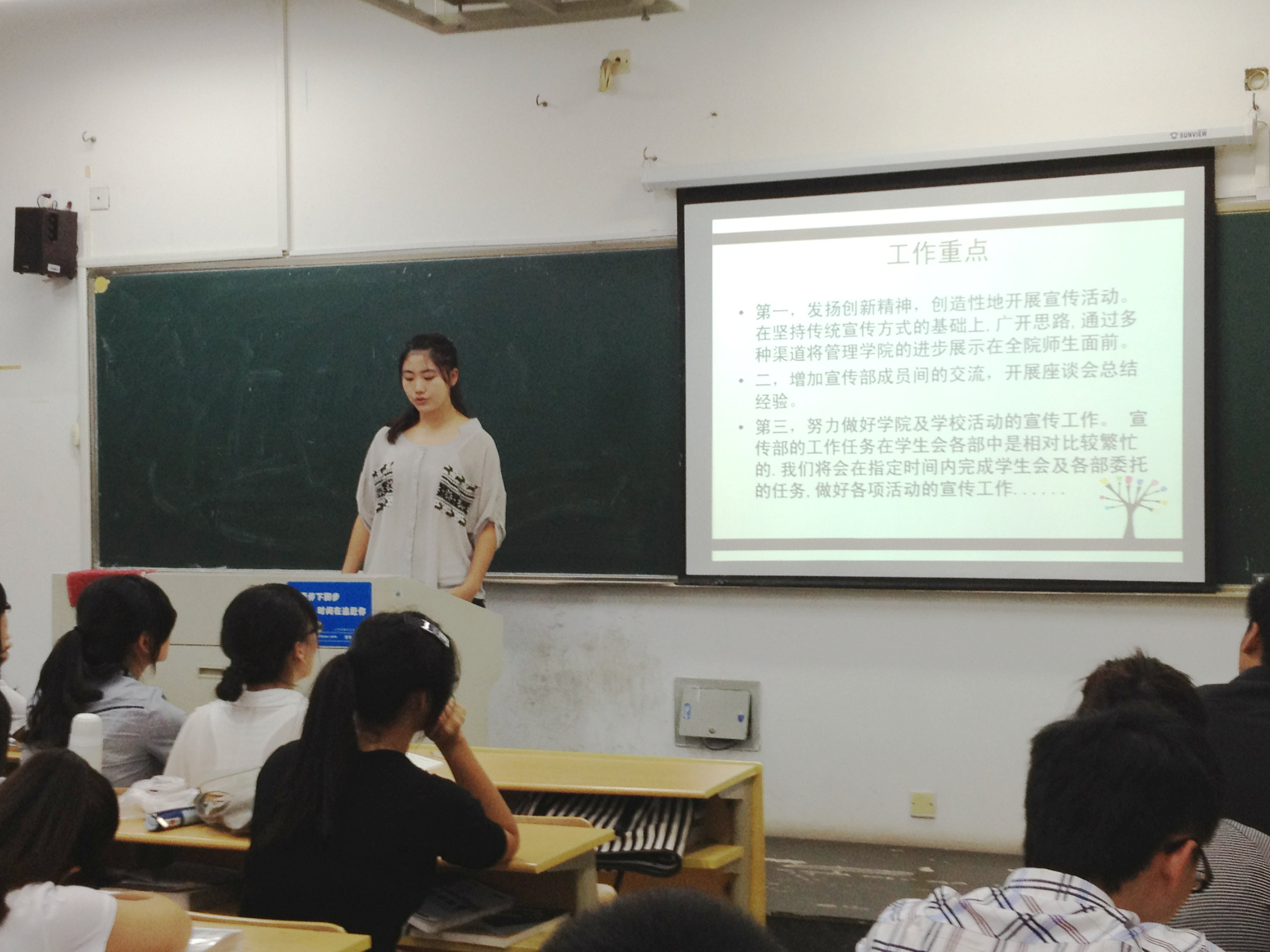 首先,团委书记陈赞安老师发表讲话,他正式宣布了2012-2013学年第一学期国际合作学院员工会全体成员任职名单,并对这届员工会提出几点希望:有责任心、有凝聚力、积极锻炼自己。他希望全体员工会成员做好表率,带动全体同学参与到学院的各项建设中去,将学院团学发展壮大。接着,院员工会的各个部门的部长们均作部门展示和自我介绍。最后,由员工会主席赵前进行总结发言。他强调了学习的重要性,并就工作方法、本学期工作安排等提出了一些建议。要求员工会成员具有较高的组织沟通协调能力,希望大家能建立起学习型组织,发挥先锋模范作用,成为一名优秀的员工干部,实现自我价值。