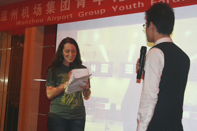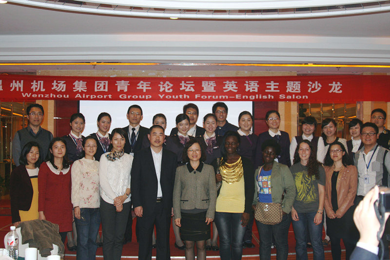 2012年11月13日,温州机场集团青年论坛暨英语主题沙龙活动在温州机场会议厅举行,公司美国职工Alison,坦桑尼亚职工Jacob,加纳职工Akosua应邀参加,参加沙龙的还有外国语学院朱晓申副经理。