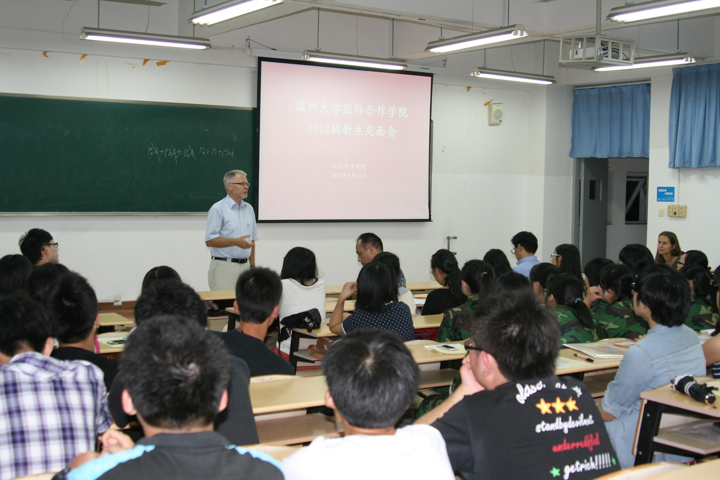 9月10日晚,公司2012级中丹合作项目市场营销专业新生见面会于南校区7D-402举行,公司党总支书记朱建平、副经理陈军、中丹项目办学主管Jorgen Dalhoff教授、丹麦方教师代表Dorthe教授以及新生班主任缪维嘉老师和陈翊老师出席本次会议,会议由员工科陈赞安老师主持,共有65名新生参加本次见面会。