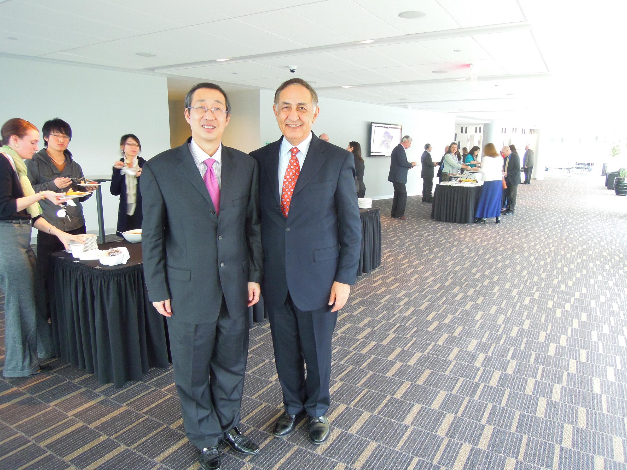 美国肯恩大学董事长达伍德·法拉希对严经理的到来表示了热烈欢迎,并举行了盛大的欢迎宴会。访问期间,严晓鹏经理与肯恩大学高层管理人员就两校合作设立海外孔子学院、交换生项目、在校生2+2项目等内容进行了深入的交流与探讨,达成了全面的学分互认意向,为两校签订合作协议奠定了扎实的基础。