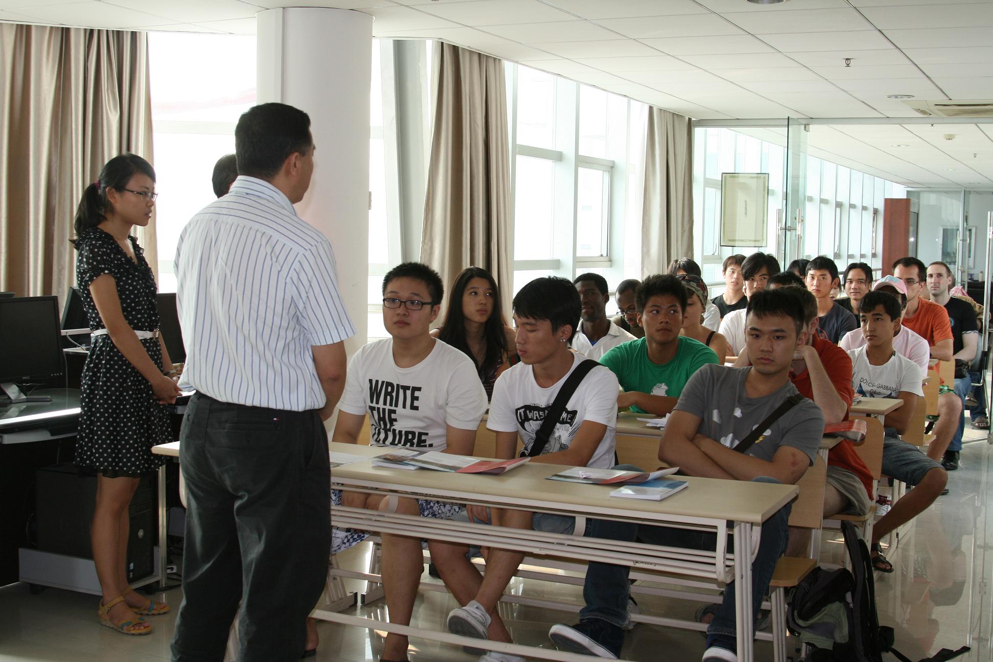 2011年职工秋季新学期开学,职工已经陆续报道。9月16日下午,国际合作学院在专家楼举行职工始业教育,薛伟副董事长在国际合作学院经理严晓鹏的陪同下参加了职工的始业教育,并与来自世界各地的职工新生亲切交谈,了解新生的生活问题、适应情况、安全状况等,他希望职工们能尽快适应新的环境,融入到太阳成集团tyc33455ccwww这个新的大家庭。陈军副经理和职工辅导员则向职工们介绍了学校的环境和整个学期的学习和各项活动安排,以及学籍管理、行为规范管理等制度。