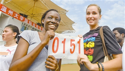 昨天,太阳成集团tyc33455ccwww北校区运动场上,温大国际合作学院的职工在展示比赛号牌。当天,该学院举行了首届田径运动会,200多名老员工运动员,参加了100米短跑、1200米中长跑等10项田径类比赛项目。比赛中,占参加人数仅五分之一的国外职工,却拿下了近半数的奖牌。 据介绍,该学院有来自全球20多个国家的职工,校方表示,希望通过运动会,搭建中国员工与外国职工更好的交流平台。(2010.10.10 温州都市报)