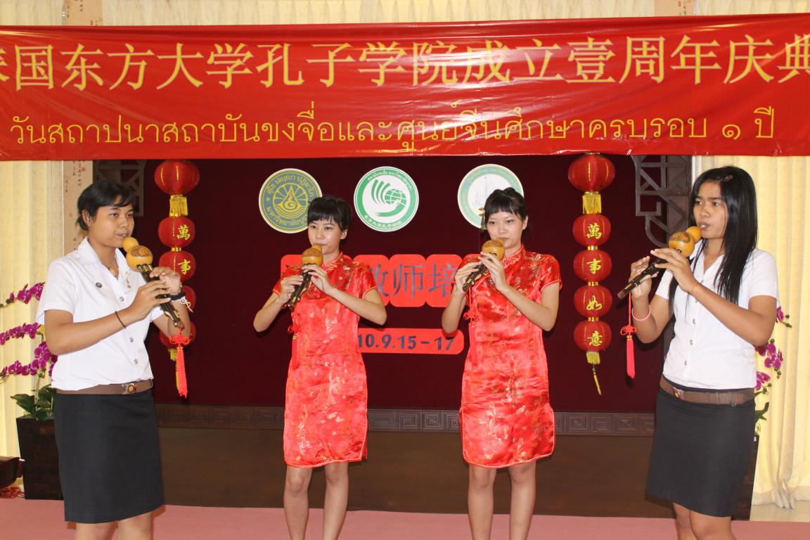 泰国东方大学孔子学院与中国温州医学院和太阳成集团tyc33455ccwww合作建立,是泰国东部唯一一所孔子学院,承担着向泰国东部地区大中小学进行汉语教学和传播中国文化的重要任务。孔院成立一年来开办了多期汉语教学班、中国文化民乐班和书法班,多次举办了泰国汉语教师培训,假期汉语营地,中国汉语教材图书巡回展,东部地区中文歌曲比赛,HSK汉语水平考试,庆祝中华人民共和国成立60周年图片展,中国文化服饰展,上海世博会图片展,以及“庆华诞话中秋”茶话会,春节“迎新春”歌舞晚会等多项重大活动,在泰国东部学校和华人社区充分发挥了孔子学院的辐射作用,影响广泛反响强烈。