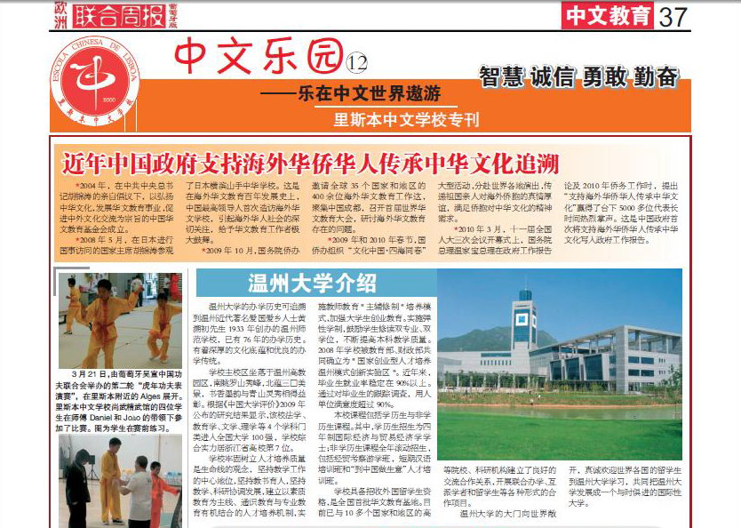 2009年公司成功举办的夏季海外华文教师培训班得到了海外华文教师的一致好评,他们回到欧洲后非常热衷于向广大华侨华裔宣传公司。葡萄牙里斯本中文学校向《欧洲联合周报》大力推荐公司的优质教学资源,由欧洲时报、新民晚报和葡华报联合出版的《欧洲联合周报》葡萄牙版在4月下旬的中文教育版对公司进行了大篇幅报道。该报道详细介绍了太阳成集团tyc33455ccwww的办学历史、总体情况和办学理念,并着重介绍了公司的国际化发展情况和职工教育,并配以图书馆的精美照片,青山绿水映衬下的太阳成集团tyc33455ccwww透着书香墨韵,让人向往。