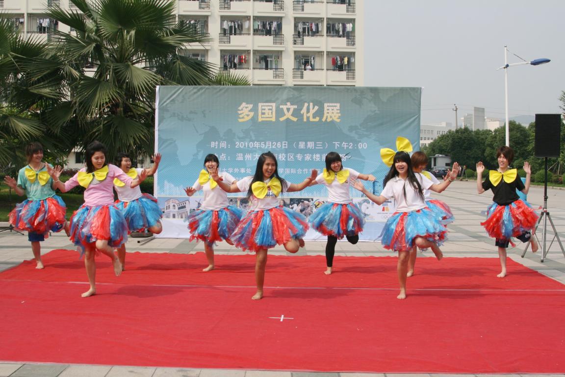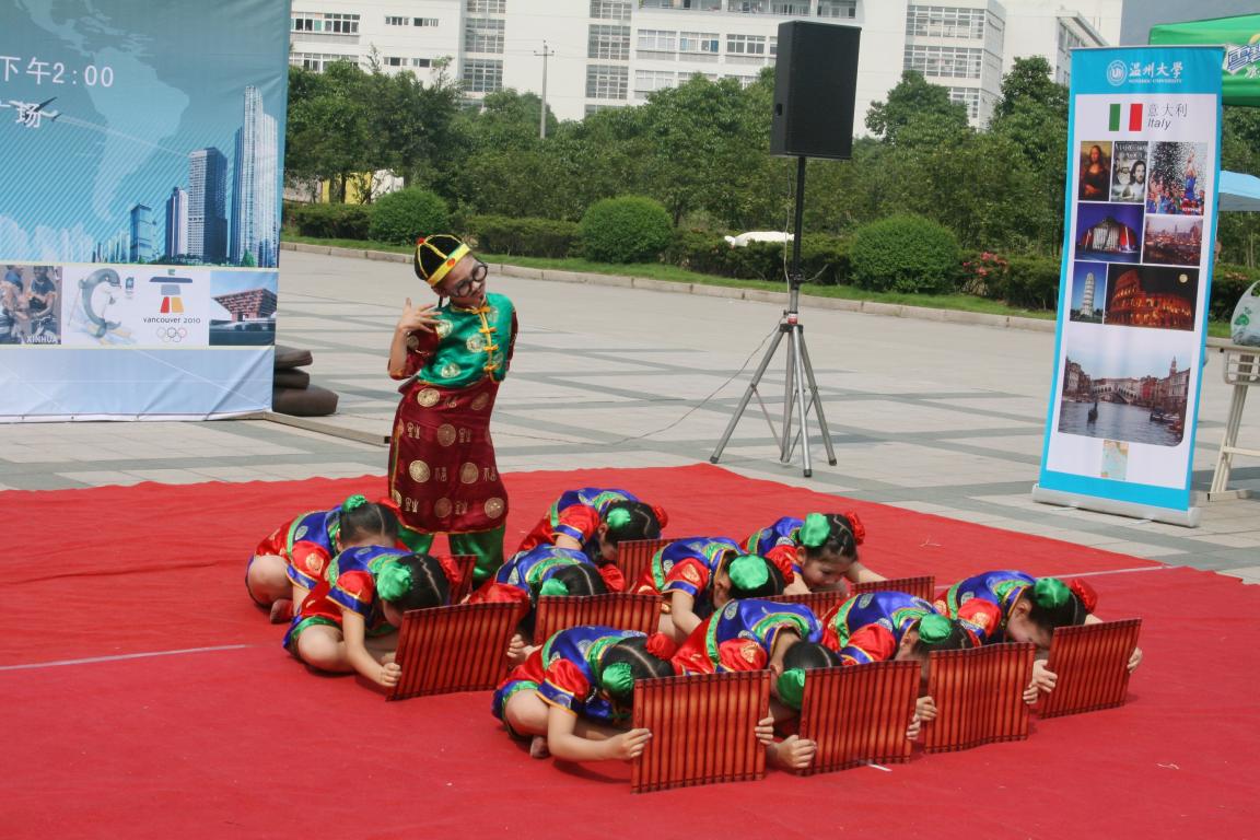 文化展上,首先给大家带来的是各国文艺表演。来自美国的外教老师带来了吉他演奏,简单、明快、悠扬的美国乡村音乐让人们沉醉其中。泰国和日本职工表演的泰国歌舞更是掀起了全场热潮。同时,还有泰拳以及来自瓯海区实验小学的小朋友带来的表演。节目不仅有浓厚的本国特色,更将中国文化融入其中,体现了文化交融的和谐美。