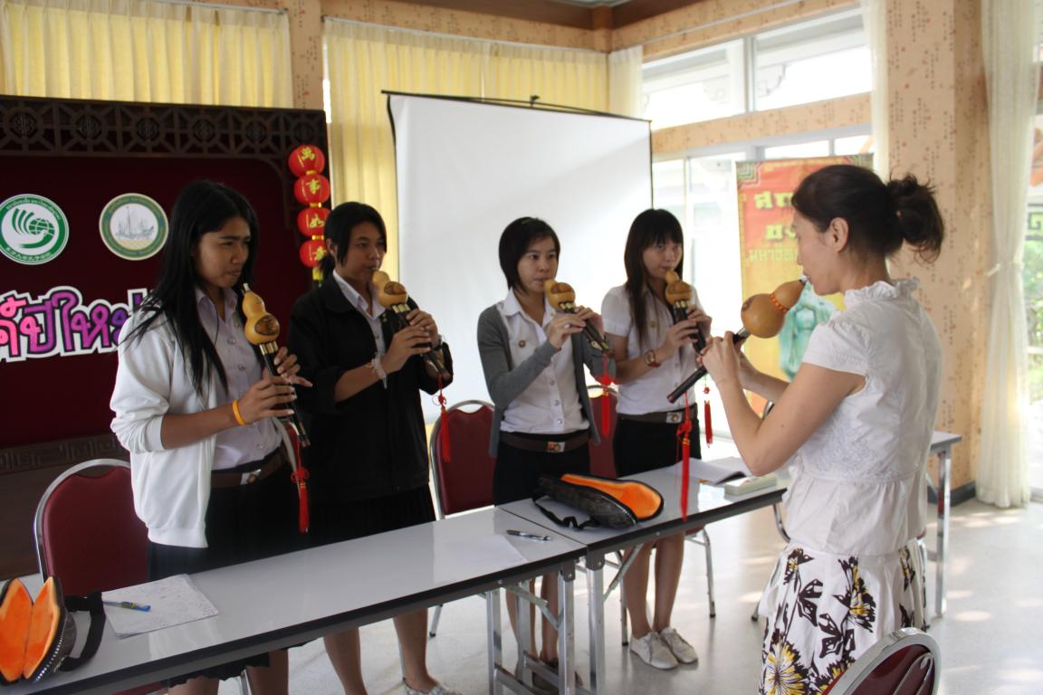 2010年1月11日,泰国东方大学孔子学院民乐班正式开课,公司国际合作学院张丽丽老师担任第一期葫芦丝演奏班的主讲教师,多名学员参加了这期葫芦丝班的学习。