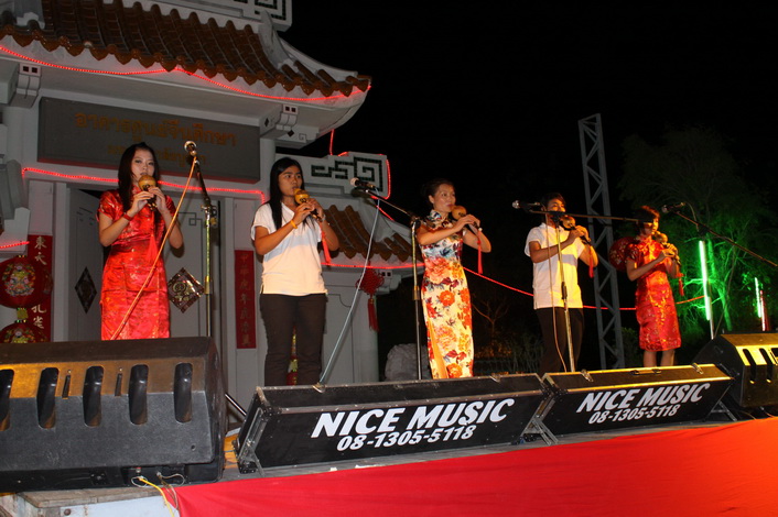 2月11日孔院举办了隆重的“虎年迎新春”文艺晚会。在热烈欢快的气氛中,张老师带领她的葫芦丝班的员工表演了精彩的文艺节目。员工们虽然学习葫芦丝的时间不长,吹奏的技术还不娴熟,但她们喜爱中国乐器,学习热忱极高,为了能够在晚会中有良好的表现,演出前的一段日子一直在加紧练习,因而在演出中取得了很好的反响。特别是在第一首乐曲《婚誓》结束后,演奏泰国家喻户晓的歌曲《甜蜜蜜》时,台下的观众随着乐曲鼓掌唱和,使会场气氛立即活跃起来。员工们在演出中得到锻炼,同时也增强了学习的信心。