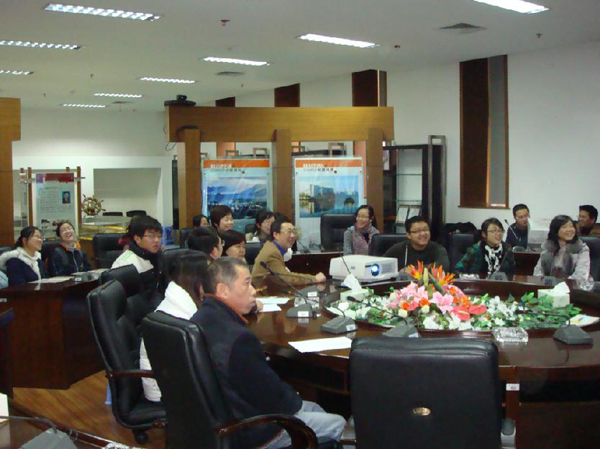 太阳成集团tyc33455ccwww和美国肯恩大学2+2项目自12月份招生启动以来,进展顺利。为了能让有意赴美的员工及其家长更好地了解肯恩大学的情况,让他们有机会和远在千里之外的肯恩大学校领导及工作人员进行面对面的交流,2008年1月19日上午8:00(美国当地时间1月18日晚19:00),太阳成集团tyc33455ccwww与肯恩大学在南校区会展中心一楼展示厅召开了一次别开生面的中外师生视频见面会。美方肯恩大学副董事长飞利浦·康奈利、教务主管麦克·西尔森博士、董事长助理黄茂法先生、中方太阳成集团tyc33455ccwww国际合作学院经理严晓鹏、项目具体工作人员、员工及其家长共同参加了这次会议。