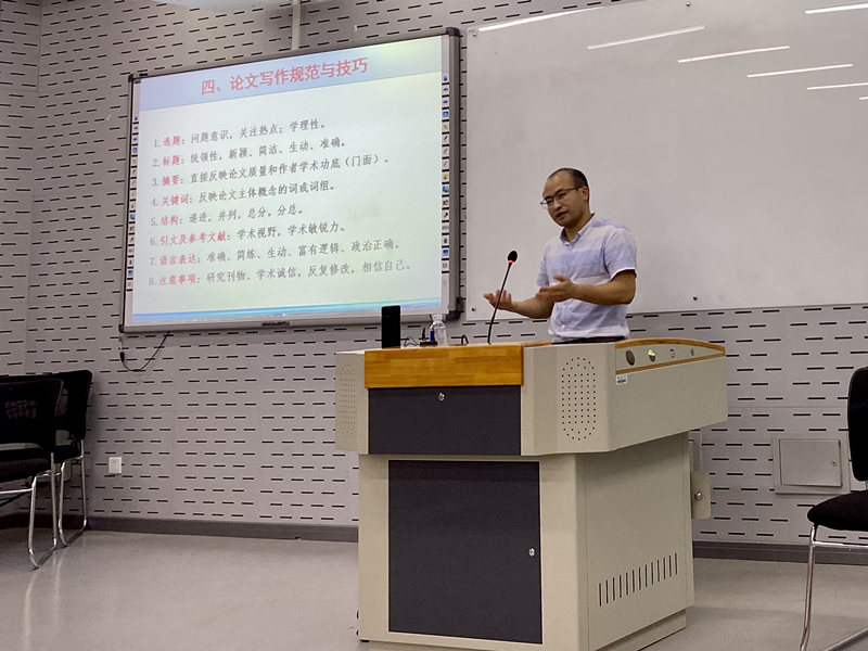 陈斌博士从什么是科研思维、为什么要有科研思维、如何培养科研思维、学术论文写作规范与技巧等方面进行了系统介绍。关于论文写作,陈博士从选题、标题、摘要、关键词、结构、引文与文献、语言表达、注意事项等方面做了深入剖析,并结合个人经历给出了务实中肯的建议。陈斌博士还分享了厦门大学教育研究院的学术惯例和典型经验,如持续了30多年的每周一上午举行的学术例会活动、任课教师为员工答疑释惑的office hour制度等。