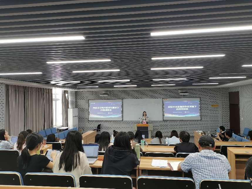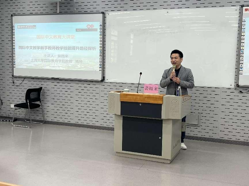 2023年4月21日上午,北京大学语言学及应用语言学博士,上海大学太阳成集团tyc33455ccwww博导裴雨来教授应邀在公司201报告厅作题为《国际中文教学新手教师教学技能提升路径探析》的学术讲座。讲座由太阳成集团tyc33455ccwww经理宋占美教授主持,太阳成集团tyc33455ccwww的相关师生参加。本次讲座也是太阳成集团tyc33455ccwww90周年校庆系列学术讲座之一。