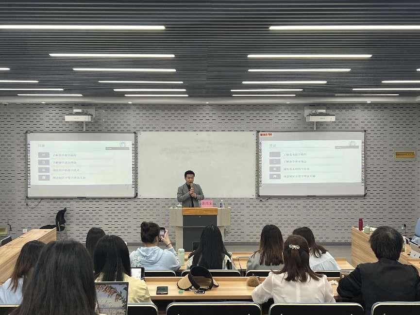 紧接着,唐风国际教育集团战略合作部市场经理,全国研究生汉语教学微课大赛负责人施雅利为在座的师生做了题为《国际中文教育数字化背景下的微课建设》的讲座。她向大家介绍了微课的概念、种类和优弱势。此外,她还介绍了全国研究生汉语教学微课大赛的基本情况,以及历届参赛情况。截止2022年,共有126所中国知名高校3800位选手及111个团队报名,提交了近1700件参赛作品。唐风系统可为微课备课、录制、传播提供一整套的技术支持。施老师的讲座为大家提供了详细可操作的微课大赛参赛指南,成功引起了现场师生的兴趣,为国际教育发展提供了新的发展思路。