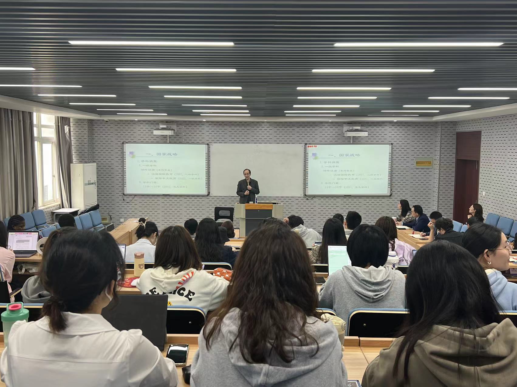 程邦雄教授从宏观和微观两个角度对汉字研究、汉字文化以及两者之间的关系做了全面、深入的阐释;指出汉字运用方面存在的一些突出问题,强调在汉字研究和对外汉语教学中要明确汉字的性质和特点。程教授通过具体的例子解读汉字,并以此发掘汉字所蕴含的文化意义,让师生们从简单的汉字形态看到了一幅幅生动的画面和故事场景,把我们带进了汉字教学的世界,为汉语国际教学提供了新视角、新方法。