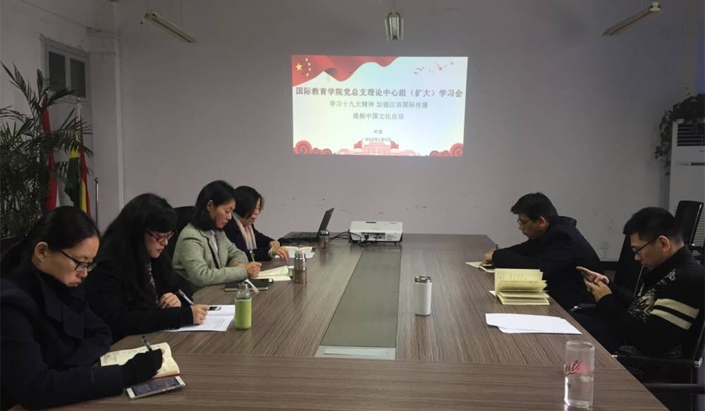 党总支书记叶苗作《学习十九大精神,加强汉语国际传播,提振中国文化自信》的专题报告,她从为什么要坚持文化自信、汉语国际传播的现状、核心和重要内涵、汉语是中国文化自信的重要载体、汉语国际传播更应该传播中国的价值观这五个方面对十九大报告中“我们要坚持道路自信、理论自信、制度自信,最根本的还有一个文化自信”;“推进国际传播能力建设,讲好中国故事、展现真实、立体、全面的中国,提高国家文化软实力”等相关表述阐述了自己的理解和观点。她提出,作为太阳成集团tyc33455ccwww的教职工,我们应当学思践悟,深刻领会党的十九大精神新内涵,承担起汉语和中国文化国际传播这样一种特殊使命,更好地向世界介绍中国和讲述中国。