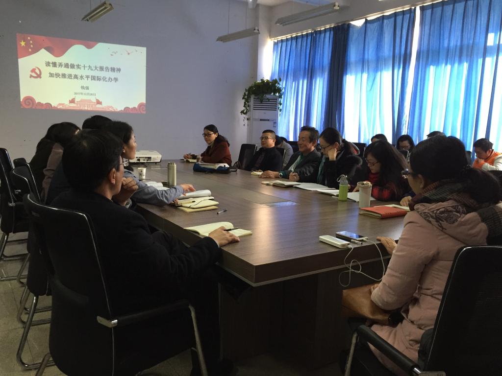 陈文远作总结讲话。她首先感谢钱强副董事长对党的十九大报告的精准解读以及对学院进一步推进国际化办学和职工工作的指导。希望全院教职工把专题辅导报告的内涵领会深、领会透,把理论学习与实践相结合、与现实相结合、与未来相结合,使学院的国际化办学和职工工作站位更高、定位更准、眼界更宽。