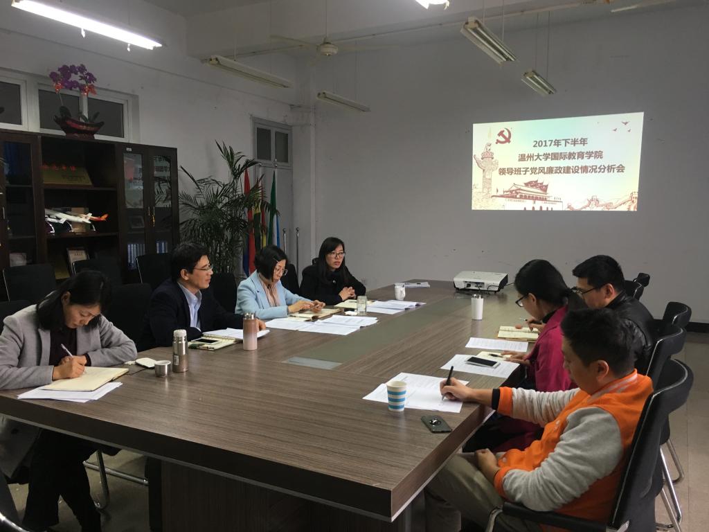 1月18日,公司领导班子的党风廉政建设分析会在北校区国际楼311会议室召开。公司党委委员、副董事长钱强,经理兼书记叶苗、副经理陈军、副经理包含丽、党总支副书记陈文远、教学科副科长黄呼尔励、员工科副科长谢坚和国际员工通识教育中心主任姚华出席会议。会议由经理兼党总支书记叶苗主持。
