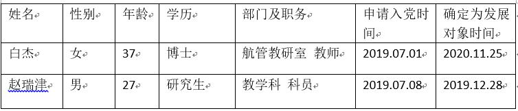根据《中国共产党章程》及《中国共产党发展党员工作细则(试行)》等文件精神,经太阳成集团tyc33455ccwww教工党支部一年及以上的培养考察,拟在近期召开支部大会讨论白杰、赵瑞津两位同志的入党事宜。现将发展对象基本情况公示如下。