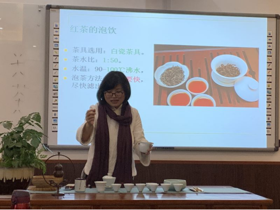 为了提高教工们的文化修养,分工会特别邀请了茶文化博士后、副教授阚文文老师作《饮茶与健康》讲座,讲解了茶的种类、饮茶健康、茶道文化等知识,并展示了绿茶、红茶、黑茶的冲泡方法,让教工们在紧张的期末工作中抽空学习茶文化,以茶养身,现场洋溢着和谐、温馨的气息。