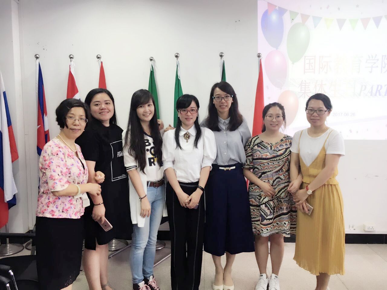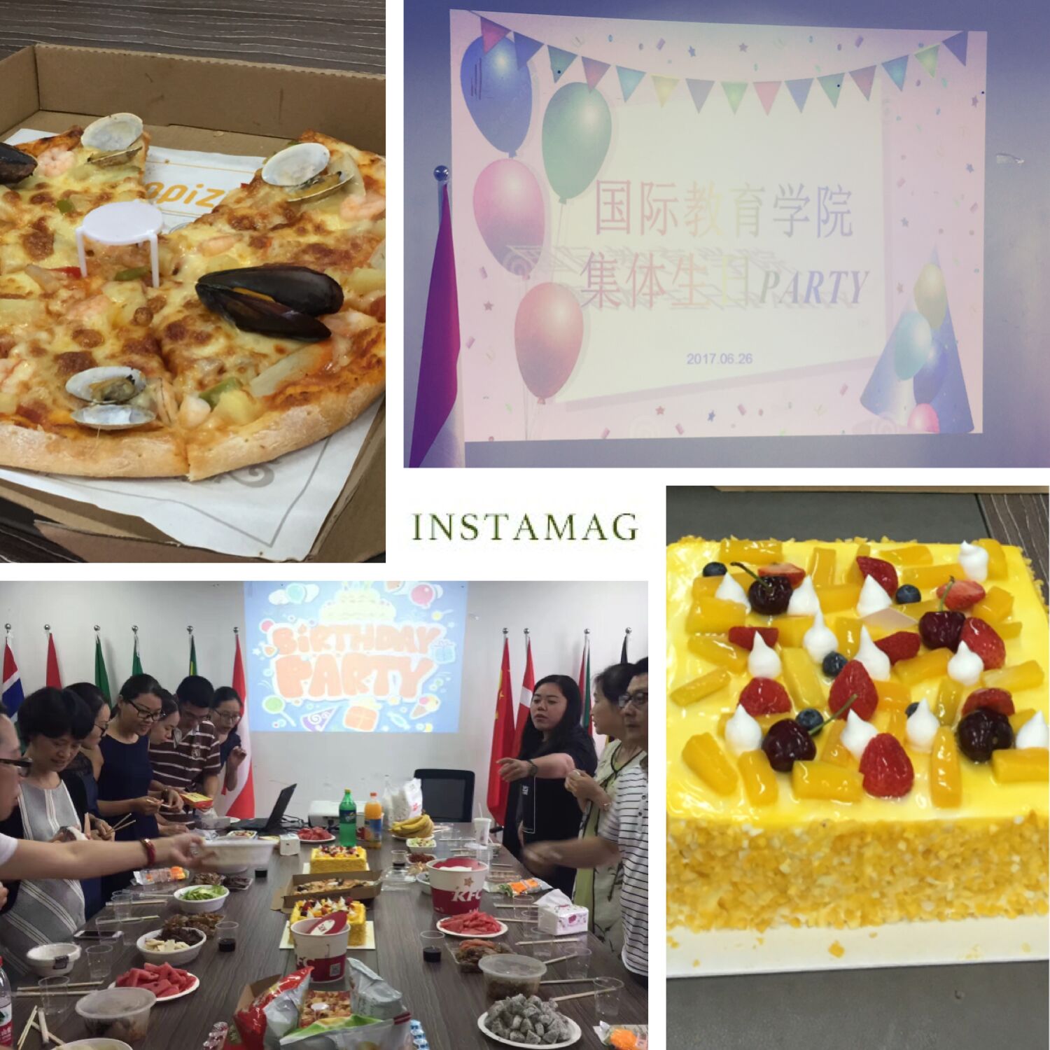 集体生日会是国际学院分工会的传统精彩活动,也是学院教职工的共享节日。集体生日派对前工会委员们分工准备了美味的蛋糕和各式可口美食。“祝你生日快乐,祝你生日快乐,祝大家生日快乐……全场一同唱起了生日快乐歌,寿星们一起切蛋糕、许心愿、吹蜡烛,将生日会的气氛推向了高潮。一张张灿烂的笑脸,一声声真诚的祝愿,一样的生日聚会,每次都给“国际人”以不同的感动!