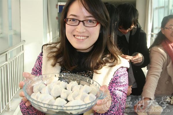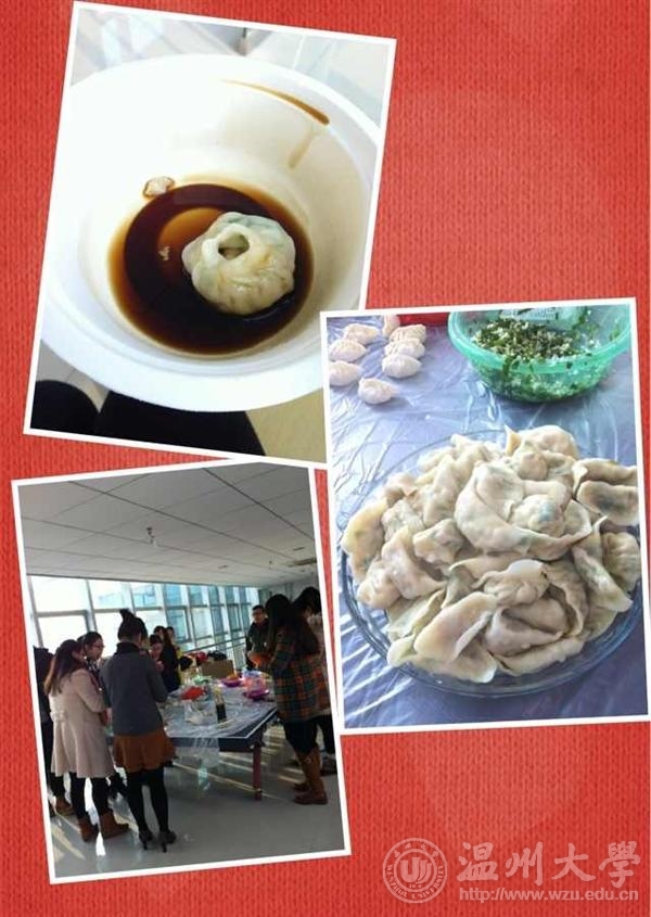 摞起袖子,剁韭菜、拌馅、包饺子……12月27日傍晚的专家楼热闹非凡,只见国际合作学院的美丽俏佳人们正在此大显身手,包饺子的现场拜师的拜师,DIY的DIY,各式各样的饺子、小笼包、云吞都在女老师们的手中新鲜出炉,当然,男老师们也不甘落后,充当评委对饺子美观程度、下锅后完整度和创意性进行评价之余,of course也要一露身手,亮上真功夫。大家互相切磋技术,包的热火朝天,欢声笑语不断,场面异常温馨!