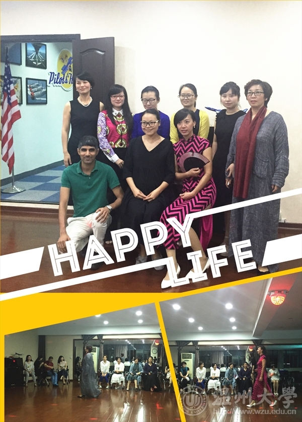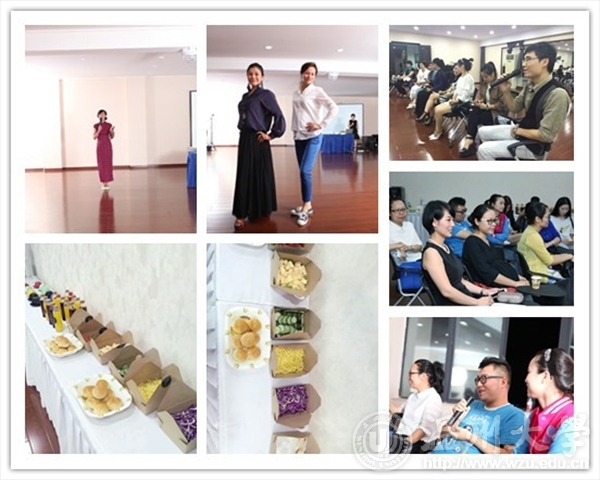 聚餐结束后,大家又前往学院路校区参加了精彩纷呈的沙龙活动,主要分为小型服装秀表演、服饰文化与礼仪presentation、互动环节、小型冷餐buffet四个部分。本期活动还邀请了温州30多名外语爱好者参加。学院工会主席包含丽副经理在沙龙活动伊始的致辞中表示,“温州是著名的侨乡,有着丰富的国际化资源,我们将欧美Language lover club的理念引进来,利用太阳成集团tyc33455ccwww国际合作学院自身的国际化资源优势,让众多职工和外教参与进来,给温州市外语爱好者创造良好的外语文化环境,使地处温州市中心的飞行学院成为温州市的多元文化娱乐交流中心,大家可以在这里结交世界各地的朋友,同时练习各国语言,找到自己的语言伴侣,提升温州市民文化品质。”现场气氛热烈,学院教工和来宾们就主题为unique clothes纷纷表达了自己的看法和观点,有的说“every cloth has its soul(每件衣服都有自己的灵魂)”,有的说“clothes represent a person’s character and personality(衣服代表了人的个性和性格)”····