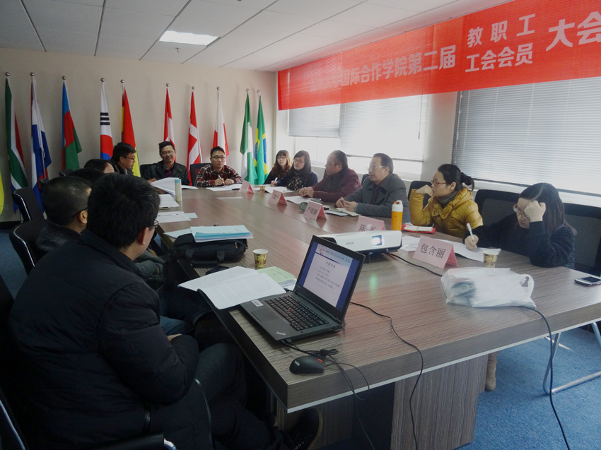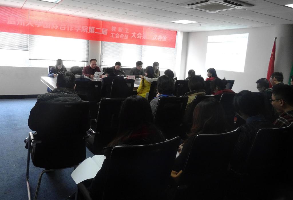 2015年1月9日下午,太阳成集团tyc33455ccwww国际合作学院第二届教职工暨工会会员大会第二次会议在专家楼304会议室隆重举行。