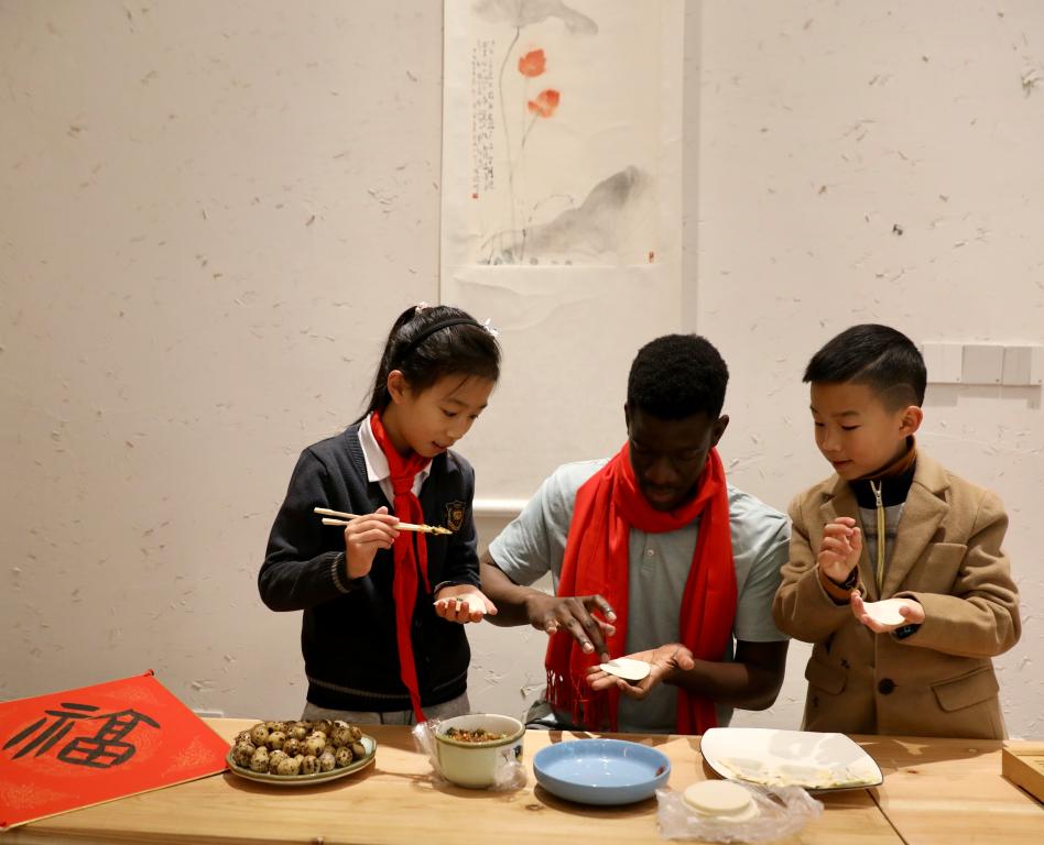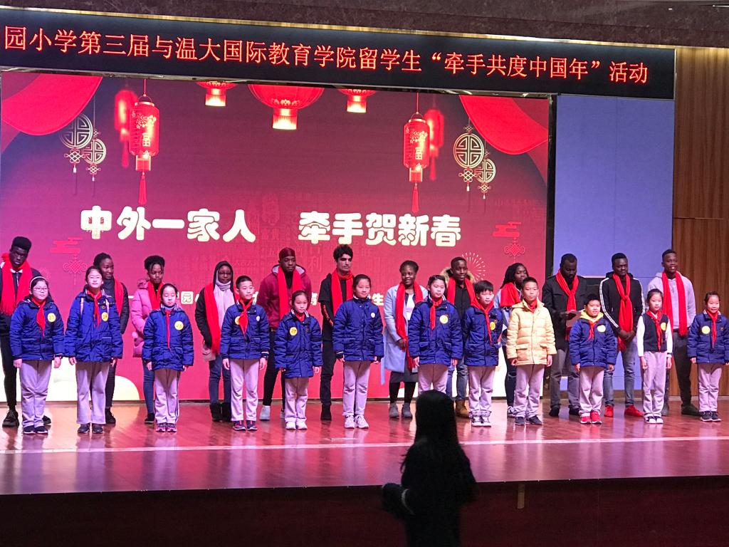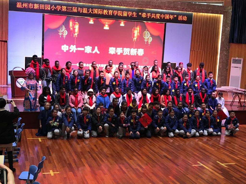 1月13日,来自加纳、坦桑尼亚、赞比亚等国家的34名国际员工在温州市新田园小学参加牵手共度中国年活动,他们与小员工的家庭一一结对共同度过富有特色的一天,体验浓浓中国年。