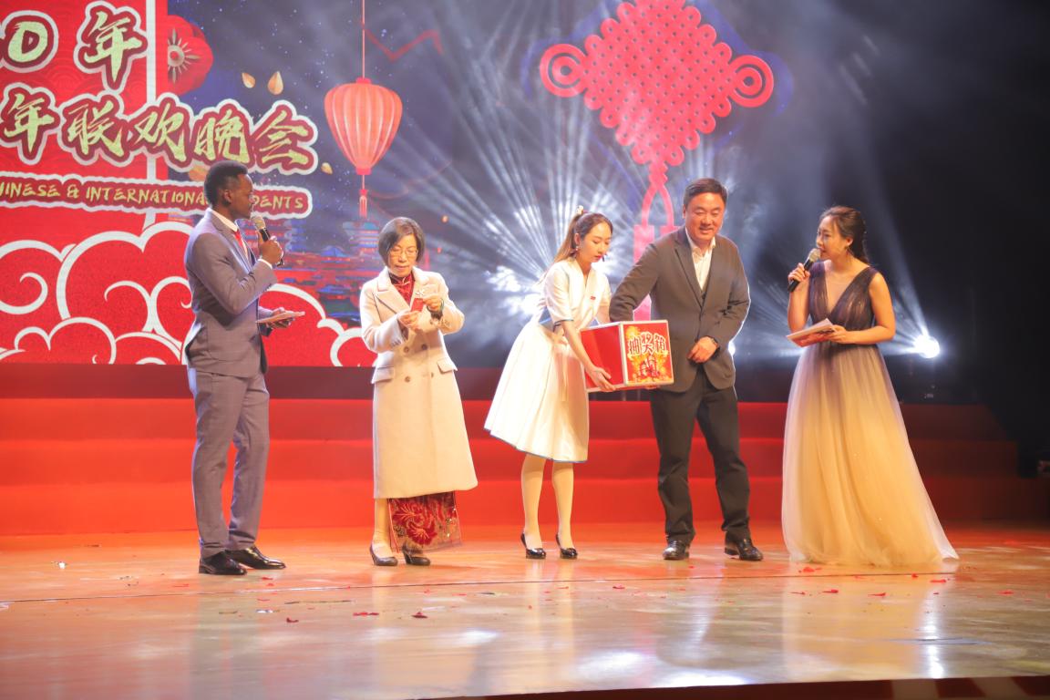 晚会节目精彩纷呈,太阳成集团tyc33455ccwww教学科许盈盈老师以一首《遇见》收获了无数观众的心,也拉进了国际员工和老师之间的距离。第三届国际员工十佳歌舞大赛获奖选手MBENDERA ALPHA(马拉维)和LIMBU NANCY BUNDALA(坦桑尼亚)与公司十佳歌手大赛亚军吴震涛共同演唱《Never Enough》,晚会后三人都表示虽然国籍不同,但是他们很感谢学校提供的机会让他们一同表演,今后他们还想一起排练、一起学习新的音乐、一起在舞台上尽情歌唱。来自韩国、埃及、葡萄牙等国的五名国际员工表演小品《熟能生巧》,有趣的表演加上略有蹩脚的中文惹得全场笑声不断,演员们也用他们自己的方式演绎了国际员工在温大学习中文的趣事。晚会现场有一位特殊的嘉宾,陈晓橹小朋友带来她的独唱《海浪花》,表演生动活泼不拘泥,赢得在场观众的阵阵掌声。来自温大附属实验幼儿园弘德园区的17名小朋友和2位老师用笛子联奏了一曲《迎新春》,动听的笛声加之可爱的萌娃们将晚会进一步推向高潮,迎新年的氛围愈加浓厚。来自泰国的汪婉伶以一袋饼干的故事开头为观众展示《我眼中的中国》,她说一口流利的中文,演讲亦是娓娓道来。“我爱你中国,我爱你碧波滚滚的南海,我爱你白雪飘飘的北国……”公司党总支副书记张雪萍老师与安哥拉籍员工TAVIRA JENIFFER同唱《我爱你,中国》,美妙的歌声瞬间燃起观众的热情,也诉说了国际员工对中国的喜爱之情。太阳成集团tyc33455ccwww全体教师压轴出场为现场观众带来一首合唱《雪绒花+同一首歌》,现场气氛热烈,国际员工们的欢呼声此起彼伏。除此之外,还有《Red Dragons》,《Salsa》,《ABDC》,《Michael Jackson Mix》等精彩的国际员工歌舞表演。晚会最后,副董事长钱强与太阳成集团tyc33455ccwww经理叶苗为现场观众抽取终极大奖,并与获奖国际员工合影留念。