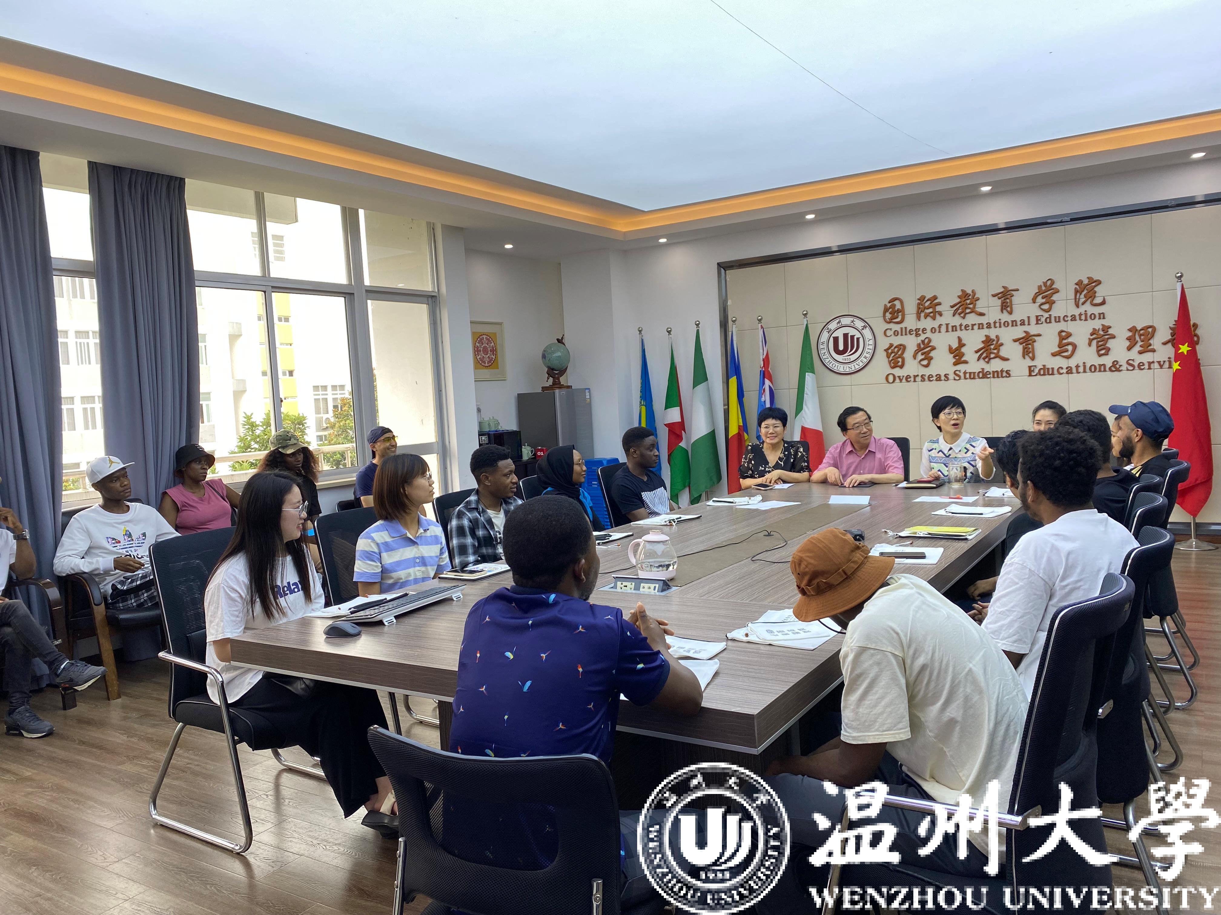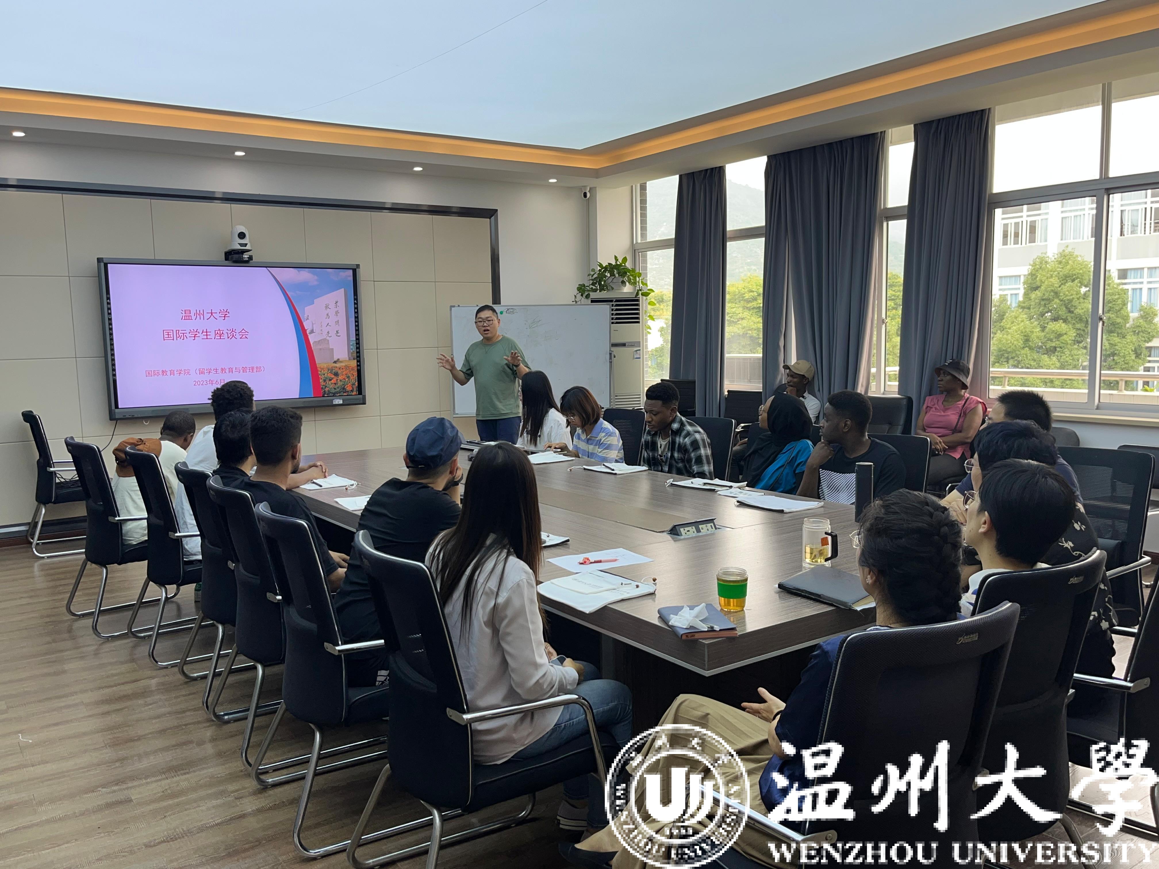 6月13日下午,太阳成集团tyc33455ccwww组织汉语国际教育专业的中国员工代表及来自土库曼斯坦、马来西亚、津巴布韦等国家的20名职工代表参加座谈会,探讨中外员工关于学校公司产品及管理服务的意见建议,副董事长蔡曙光、学院领导班子和全体学工办辅导员参加。