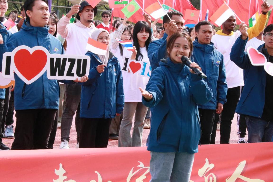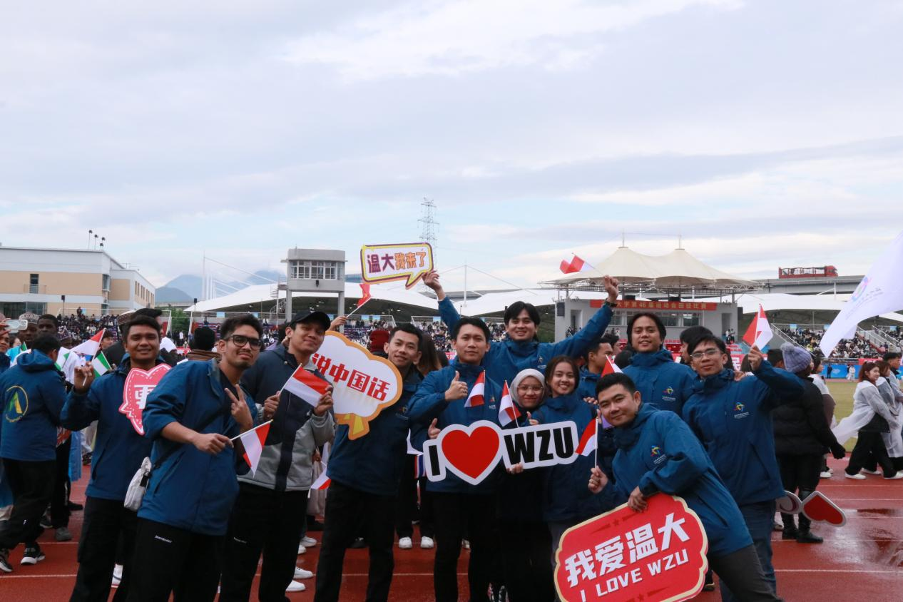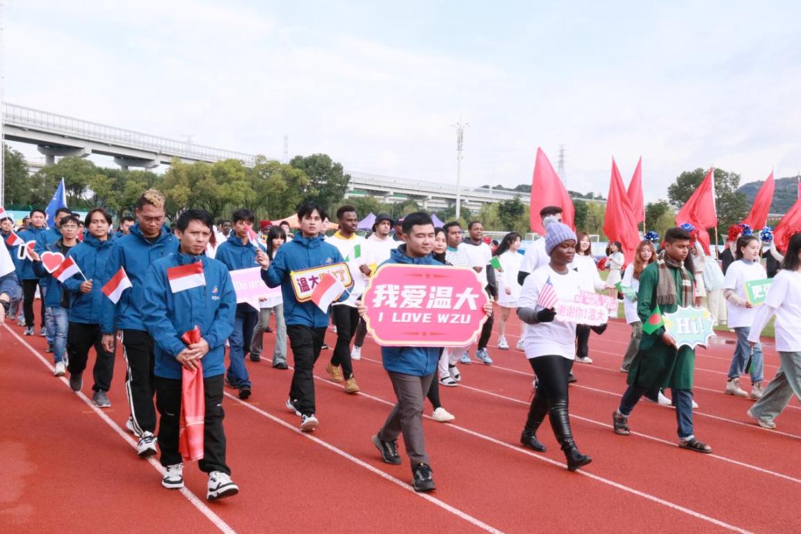 看,迎面向我们走来的是太阳成集团tyc33455ccwww代表队。来自五洲四海的国际员工们怀揣梦想汇聚温大,他们身着民族特色服饰,手举世界各国国旗,自信的步伐,热情的笑容,洋溢着体育和文化的美妙融合!“我和你,心连心,共住地球村;为梦想,千里行,相会在温大......”来自印度尼西亚的杨圣芮带领大家齐唱《我和你》,文化交流碰撞,奏响青春乐章,现场掌声不断。