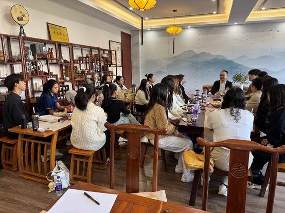 在互动交流环节,师生们围绕跨文化适应、学业发展与校园活动等话题进行了热烈而深入的讨论。来自国际中文教育硕士专业的陈明丽同学提到,起初与中国同学一起上课时,因老师语速较快,理解存在一定困难,但通过自身努力已经逐渐适应。其他同学也分享了生活中遇到的具体问题,如宿舍洗衣机数量不足、门禁管理等,学院领导与老师耐心倾听并一一回应,认真记录了同学们在教学管理与生活服务方面的建议。现场气氛温馨而活跃,茶香伴着笑语,将活动推向高潮。