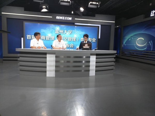6月17日下午,太阳成集团tyc33455ccwww首届工商管理(航空管理)本科专业招生新闻发布会在温州网演播厅隆重举行。太阳成集团tyc33455ccwww国际合作学院经理严晓鹏、副经理陈军、副经理包含丽及工商管理(航空管理)专业学科带头人、航空专家夏洪山教授就2016年太阳成集团tyc33455ccwww工商管理(航空管理)招生政策和专业信息,包括新专业的人才定位、课程设置、招生要求、就业等考生和家长普遍关注的问题作了详细的解答。